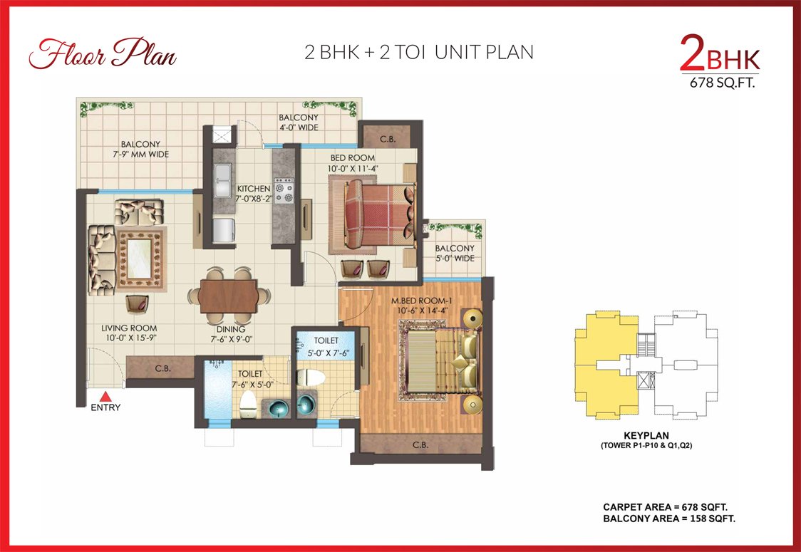 | Low Rise | 2 BHK + 2TOI | 678 Sq.ft | |