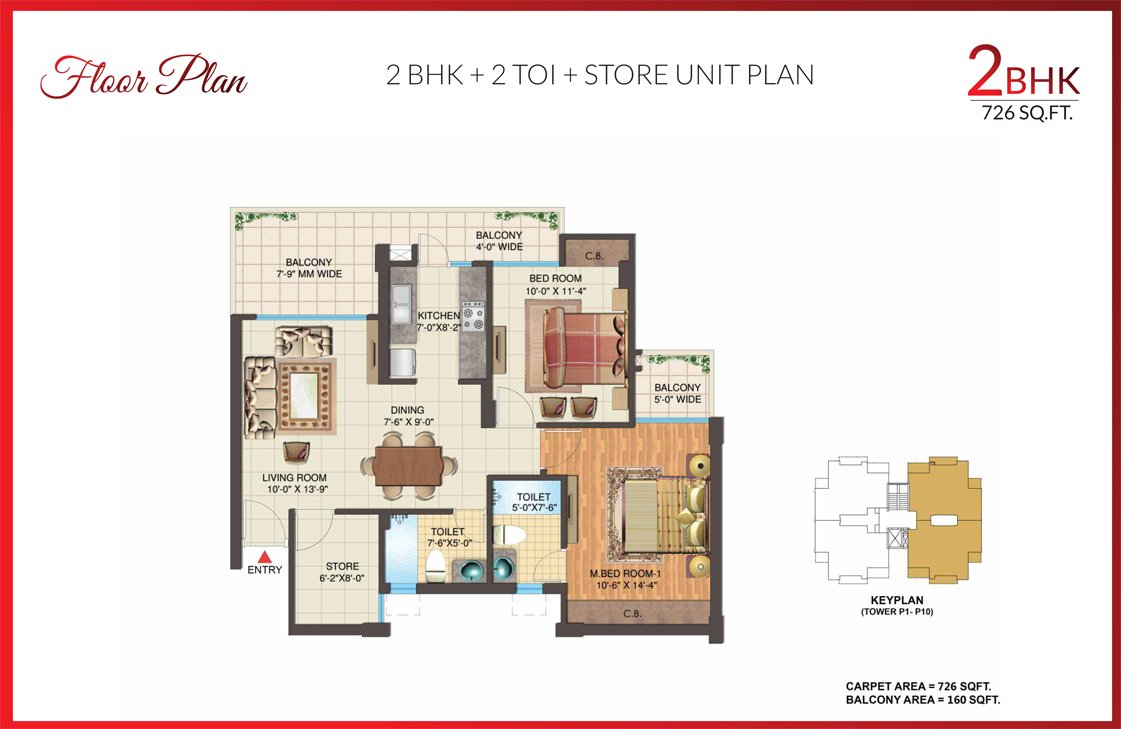 | Low Rise | 2 BHK + 2TOI + Store | 726 Sq.ft | |